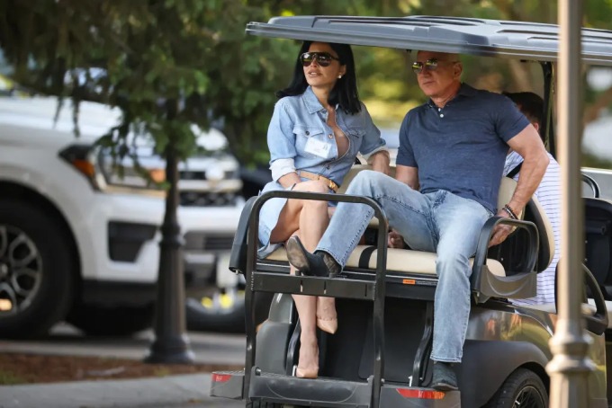 Ngoài cặp Bill Gates và Paula Hurd, trại hè tỷ phú năm nay còn có sự góp mặt của cặp đôi quyền lực Jeff Bezos và Lauren Sanchez. Cặp vợ chồng sắp cưới đến Sun Valley từ hôm khai mạc 10/7. Một ngày sau đó, họ được nhìn thấy mặc trang phục denim, ngồi trên xe golf đi thư giãn.
