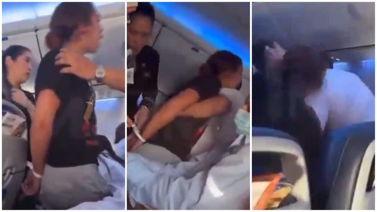 Đoạn video do một hành khách ghi lại cho thấy cảnh một người phụ nữ la hét và chửi thề với những hành khách khác trong khi các thành viên phi hành đoàn cố gắng khống chế cô trên lối đi.