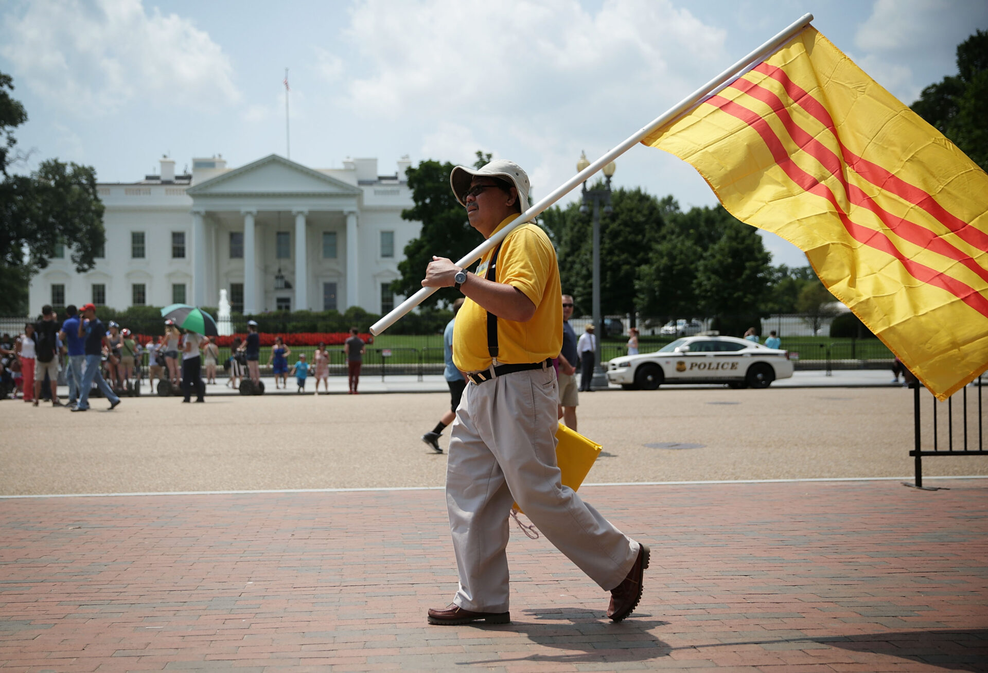 Cộng đồng người Việt biểu tình chống Tổng Bí Thư CSVN Nguyễn Phú Trọng khi ông đến Tòa Bạch Ốc ngày 7 Tháng Bảy, 2015. (Hình: Alex Wong/AFP/Gety Images)