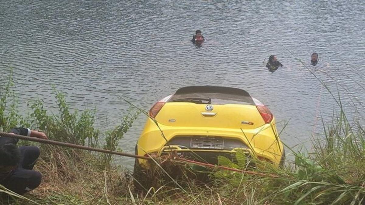 Người phụ nữ mang thai, Wannarat 30 tuổi, đến từ quận Si Maha Phot, đang lái xe cùng chồng thì cô rẽ nhầm hướng và đạp nhầm chân ga thay vì chân phanh. Chiếc xe MG màu vàng của họ đã lao ra khỏi đường và chìm xuống một con sông sâu 4 mét.