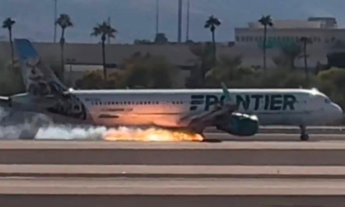 Hãng Frontier cho biết chuyến bay gặp sự cố sau khi đi từ thành phố San Diego, bang California đến Las Vegas. Hiện chưa rõ nguyên nhân bộ phận càng đáp bốc cháy.