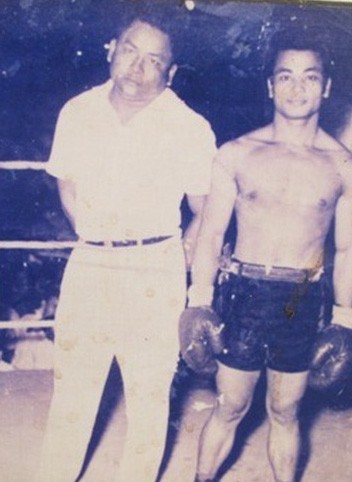 Lý Huỳnh (Ở trần) trên võ đài trước 1975.