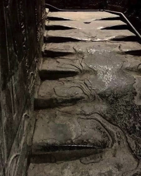 Bậc thang dẫn lên Đền Hathor, nằm ở Ai Cập, vẫn là một bí ẩn hoàn toàn đối với các nhà khảo cổ học. Những bậc thang này đã bị tan chảy một cách kỳ lạ, điều mà khoa học chưa thể giải thích được, bởi chúng được xây dựng từ đá granite rắn chắc. Khi xem xét kỹ lưỡng, có thể thấy rằng sự hư hại của các bậc thang này không thể là do xói mòn hay hao mòn tự nhiên.