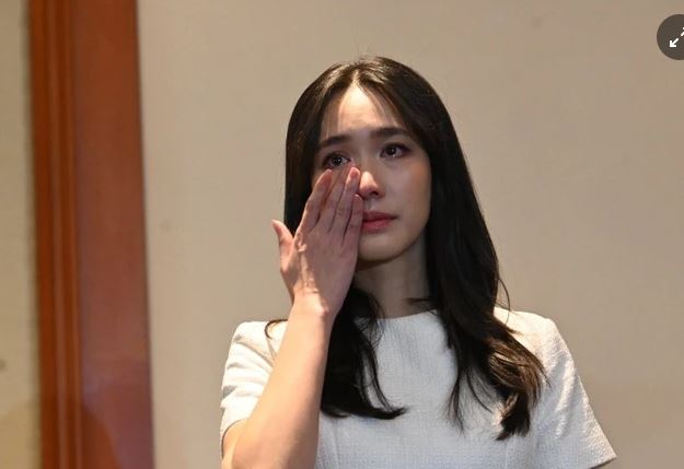 Min Peechaya bật khóc tại họp báo. Ảnh: Khaosod.