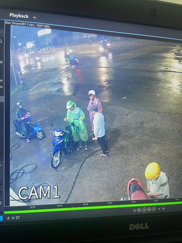 Camera ghi lại hình ảnh nam tài xế cùng đối tượng vào đổ xăng. Ảnh: CACC