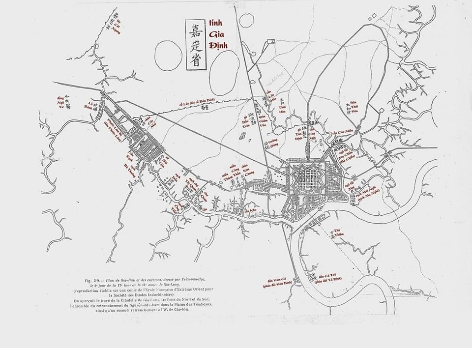 Bản đồ Gia Định năm Gia Long thứ 14 (1815) này cho ta thấy rất rõ hai đô thị khác biệt.