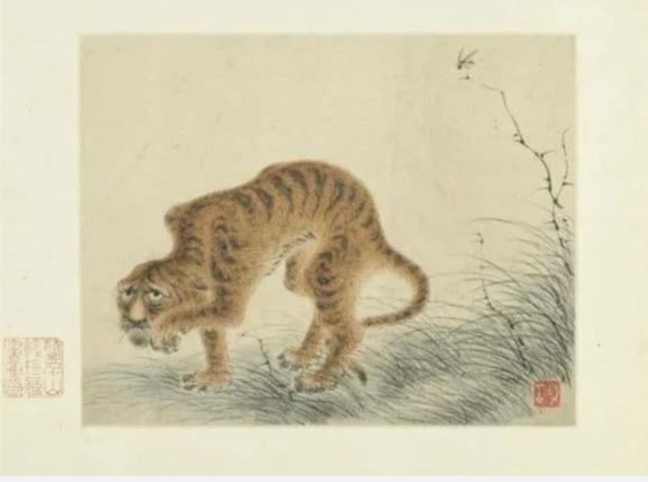 Đặc biệt, khi chú ý đến góc trên bên phải của bức tranh, một chấm mực được phát hiện chính là hình ảnh của ong dại đang đe dọa con hổ. Sự thật đằng sau bức tranh là con hổ mạnh mẽ đã vô tình lạc vào lãnh thổ của ong dại và bị chúng tấn công không thương tiếc, khiến nó không còn sức mạnh nào để phản kháng, chỉ còn biết cúi đầu mà đi.