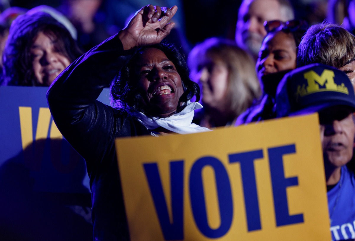 Các cử tri tại cuộc vận động của bà Kamala Harris ở Michigan ngày 28-10 - Ảnh: REUTERS