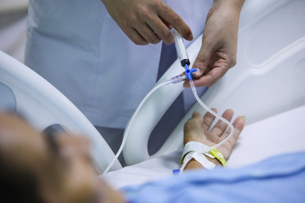 Bác sĩ đang chăm sóc một bệnh nhân ung thư. Ảnh: Thu Hằng