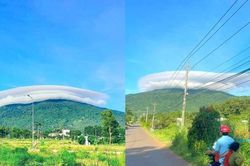 Khoảng 6h30 sáng nay 31/10, đám mây "đĩa bay" khổng lồ bất ngờ bao phủ đỉnh núi Chứa Chan (huyện Xuân Lộc, Đồng Nai), tạo nên một khung cảnh vô cùng ấn tượng. Hình ảnh gợi nhớ đến những chiếc đĩa bay trong các bộ phim khoa học viễn tưởng. Nhiều bạn trẻ tại Đồng Nai cũng như người dân nơi đây tỏ ra thích thú, tranh thủ chụp ảnh ghi lại cảnh tượng độc đáo này.Đây không phải là lần đầu tiên ngọn núi cao nhất Đồng Nai xuất hiện mây hình "đĩa bay". Trước đó, vào ngày 14 tháng 5 năm ngoái, một đám mây tương tự cũng đã xuất hiện và gây sốt trên mạng xã hội.
