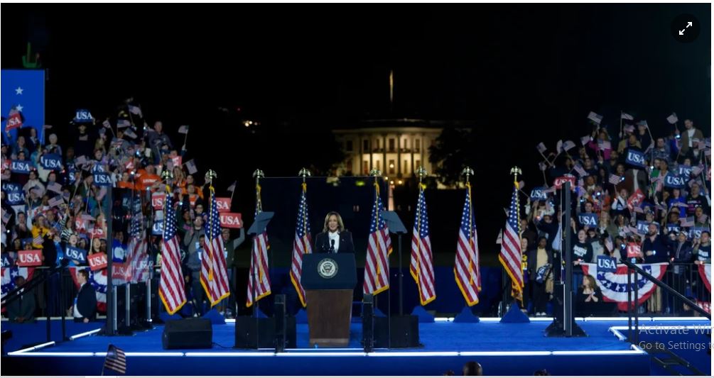 Bà Harris đưa ra thông điệp cuối cùng trong chiến dịch năm 2024 tại công viên Ellipse. Ảnh: USA Today.