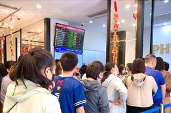 Còn tại “phố vàng” Trần Nhân Tông (Hai Bà Trưng), người dân đã xếp hàng chờ đợi từ sáng sớm, nhiều người còn rủ 2-3 người thân đi cùng để xếp hàng tại các tiệm vàng, lấy vé chờ vào mua.
