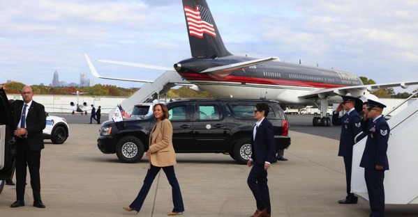 Máy bay của ông Trump và bà Harris chạm mặt nhau trên đường băng sân bay ở bang Bắc Carolina ngày 2-11, cho thấy mức độ cạnh tranh quyết liệt giữa hai người.