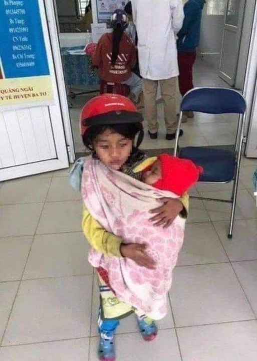 Tất cả những ai đứng đó đều thương cảm trước cảnh đứa b.é g.ái mới 7 tuổi ôm trọn đứa em 1 tuổi trong vòng tay nó. Cô y tá dẫn nó đi làm thủ tục rồi đưa em nó tới gặp bác sĩ.
