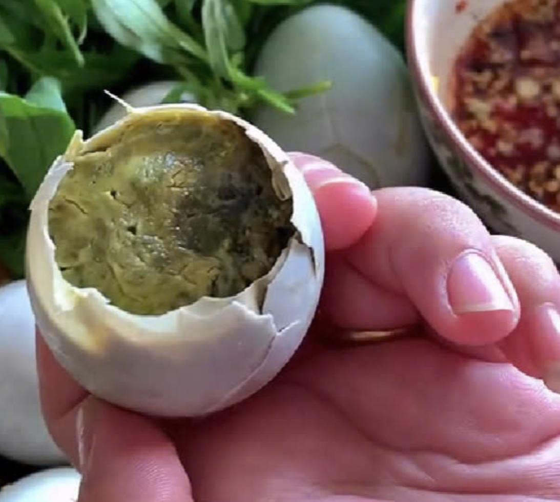 Một tiktoker khác cho biết để trứng thối ngon hơn, nên bỏ trứng thối vào bọc nilong và ủ thêm từ 5-10 ngày, khi bóc trứng ra thấy có màu xanh đậm, trứng trông như chao là đạt yêu cầu.