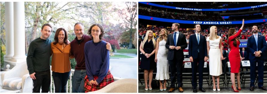 Gia đình bà Harris và ông Trump. Ảnh: Alamy/New York Times.