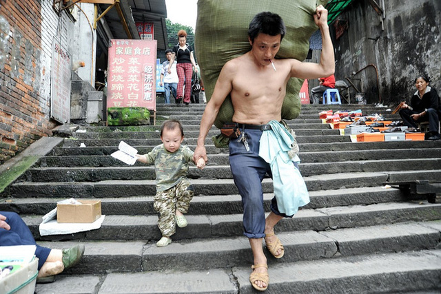 Một người đàn ông cùng với đứa con trai 3 tuổi đi khuân vác được một nhiếp ảnh gia Hứa Khang Bình lại nhấn nút chụp lại khoảnh khắc vui vẻ của 2 bố con này, khiến nổi tiếng khắp mạng xã hội với một tấm ảnh suốt 10 năm qua, hình ảnh hai bố con làm nghề khuân vác vẫn luôn là cảm hứng cho rất nhiều người xung quanh.