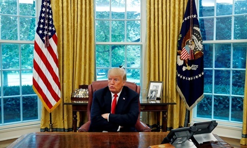Tổng thống Mỹ Donald Trump trả lời phỏng vấn tại Phòng Bầu dục, Nhà Trắng, hồi tháng 8/2018. Ảnh: Reuters.