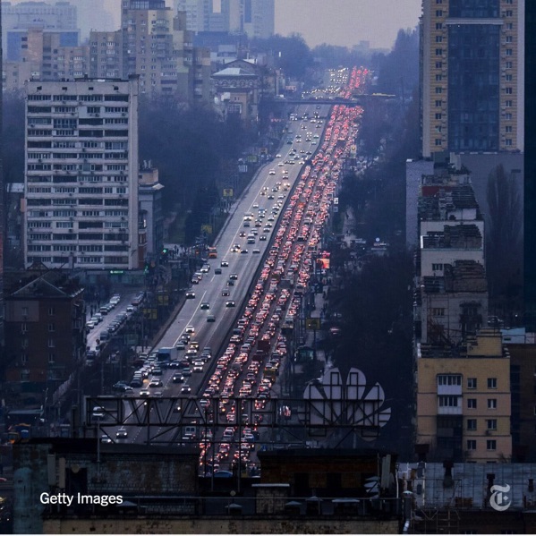 Theo đoạn băng ghi hình, nhiều thường dân đã chạy trốn khỏi Kiev sau khi Vladimir Putin ra lệnh tấn công Ukraine.