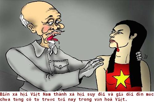 - Biến xã hội Việt Nam thành xã hội suy đồi và giả dối đến mức chưa từng có từ trước tới nay trong văn hoá Việt.