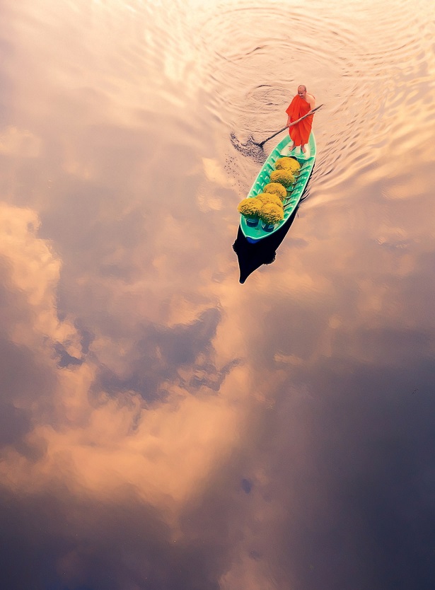 Bức ảnh của tác giả Nguyễn Tấn Tuấn mang tên "Boat carrying flowers" (tạm dịch: Thuyền chở hoa). Nhiếp ảnh gia cho biết anh chụp lại khoảnh khắc nhà sư chở hoa trên thuyền để về chùa trang trí Tết tại Đồng Tháp Mười. "Những bóng mây phản chiếu trên sông khiến con thuyền như đang đi trên mây", tác giả chia sẻ.Của SkyPixel" lần thứ 5.