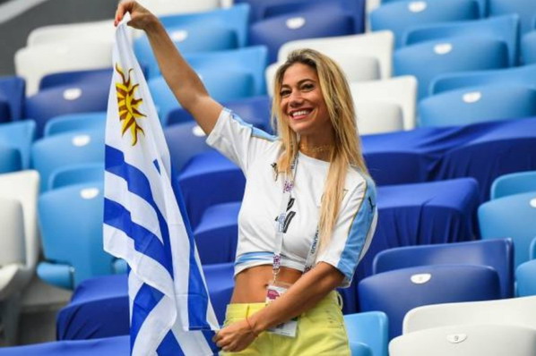 Đội Pháp áo trắng, Uruguay áo xanh da trời.