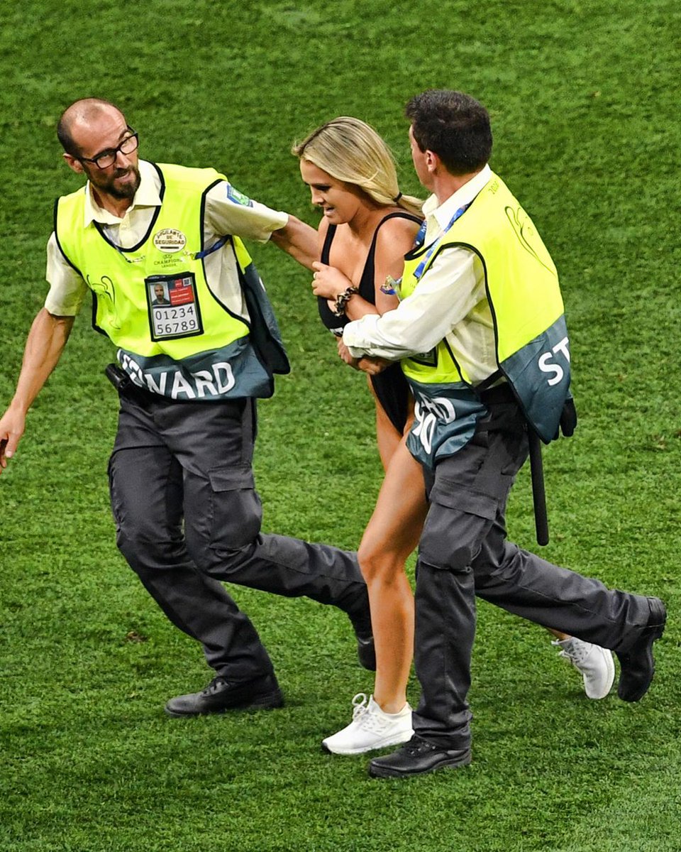 Người đẹp nhảy vào sân vì muốn đá banh ???