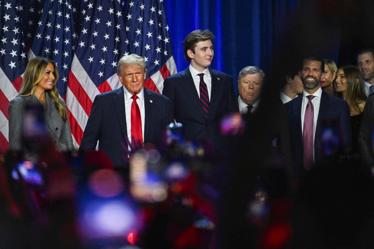 Sau khi được một số đơn vị truyền thông xác nhận sẽ thắng cử, Donald Trump có bài phát biểu dài khoảng 25 phút trước người ủng hộ ở bang Florida. Khi ông tiến vào hội trường cùng đại gia đình, bài hát Chúa phù hộ nước Mỹ vang lên, khán giả cuồng nhiệt hô vang "Nước Mỹ, Nước Mỹ!".