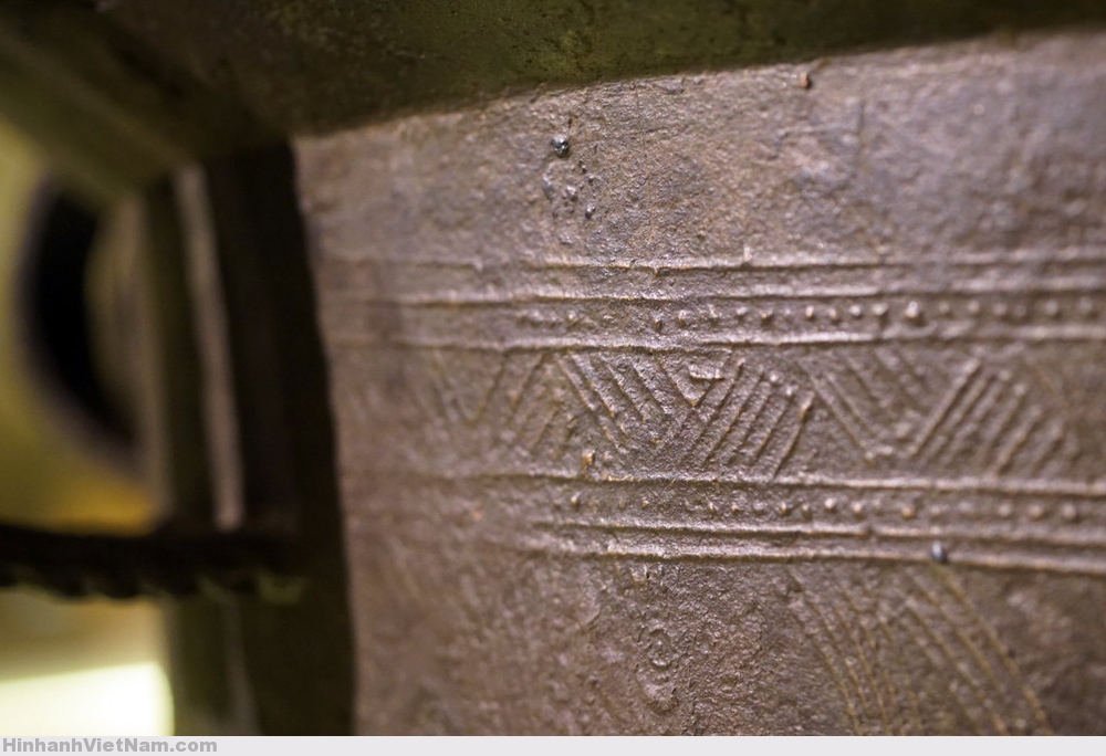 Phần giữa của thân có những hoa văn hình học chạy song song cắt nhau tạo thành 6 ô hình chữ nhật.