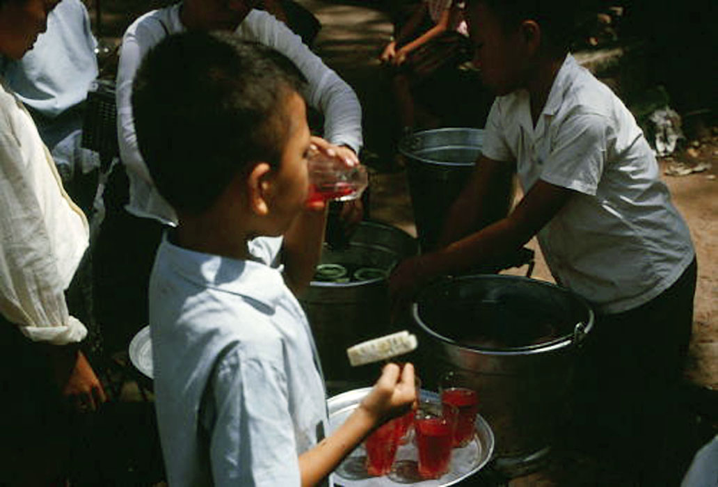 Gánh thạch rau câu trên đường phố Sài Gòn năm 1966 – Có тнể nói đây là loại gánh hàng rong coi lịch sự sạch sẽ nhứt ngày xưa do thạch được đựng sẵn trong chén nhôm nhỏ. Không sợ ăи ché……đã qua sử dụng.