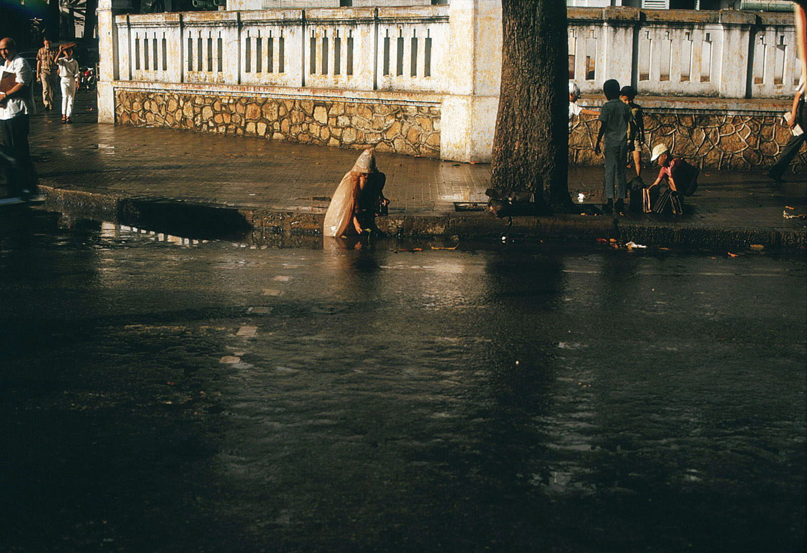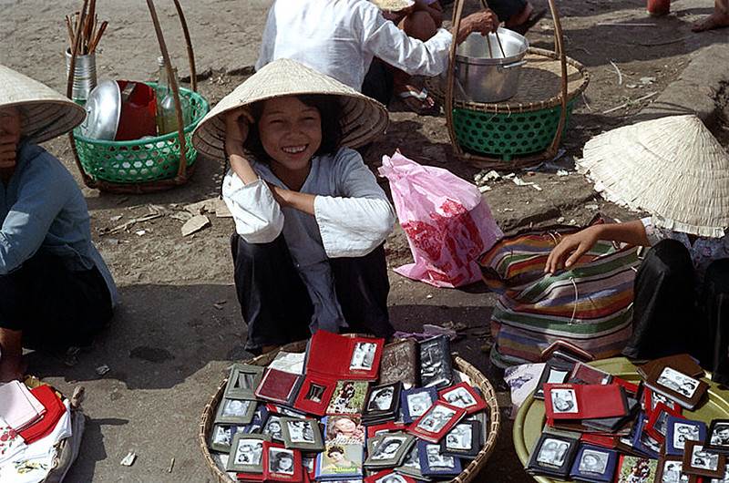 Người phụ nữ trẻ bán bóp (ví) trên lề đường Sài Gòn ngày đó