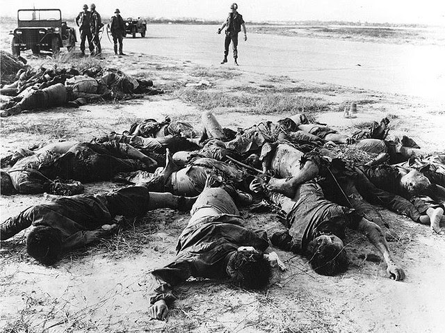 cạnh đó là đống tử thi VC bỏ lại khi rút chạy .