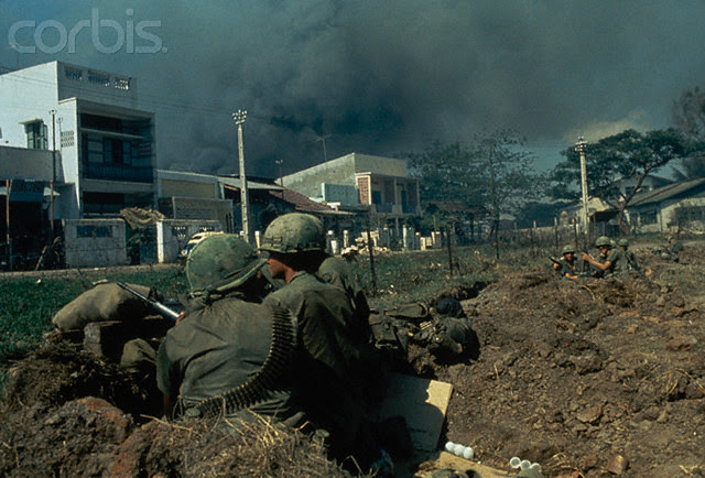 10 May 1968, Cholon, Saigon: Một toán lính đang gọi không quân yểm trợkhi vấp phải hỏa lực dữ dội của quân VC