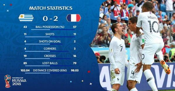 Như vậy đội Pháp được đánh giá mạnh hơn Uruguay.
