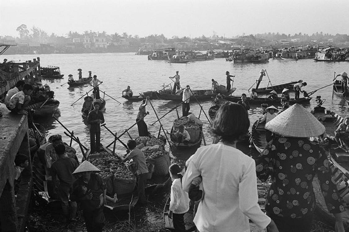 Người dân vẩn bình yên buôn bán và họp chợ иổi trên sông gần khu vực Sài Gòn vào những ngày gần cuối của cuộc cнιếɴ.