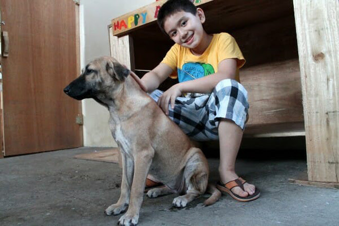 Sau này, Ken kể lại rằng ban đầu, em chỉ dám đứng cách khay đựng thức ăn cho các chú chó 50 mét vì không muốn các con vật biết đến sự hiện diện của mình. Giờ đây, Ken đã không chỉ trở nên gần gũi mà còn được vuốt ve những con vật.