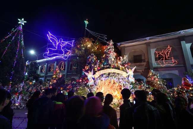 Người dân tập trung cầu nguyện và trao cho nhau những lời tốt lành bên hang đá Chúa Hài Đồng.