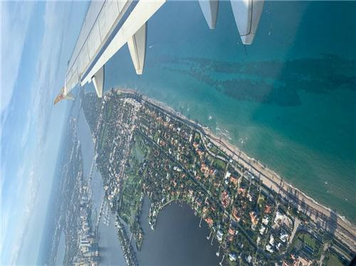 Khi phi cơ ở vào cao độ vừa phải, Mận thấy nhà cửa san sát – dường như “nhà liền đất?” nhiều hơn “nhà liền kề?” – nhưng không sơn phết màu mè rực rỡ, chói lọi như nhà bên Việt Nam. Bên Việt Nam, đi vào các thành phố lớn như Hà Nội, Hải Phòng, Dalat, Nha Trang, Saigon, v.v… thì sẽ thấy những dinh thự, những mộ phần màu sắc rực rỡ, trông nham nhở không thua gì gương mặt “bự” son phấn của mấy cô gái làm trong các tiệm “cà phê mùng”, “bia ôm” và mấy “em chân dài”!