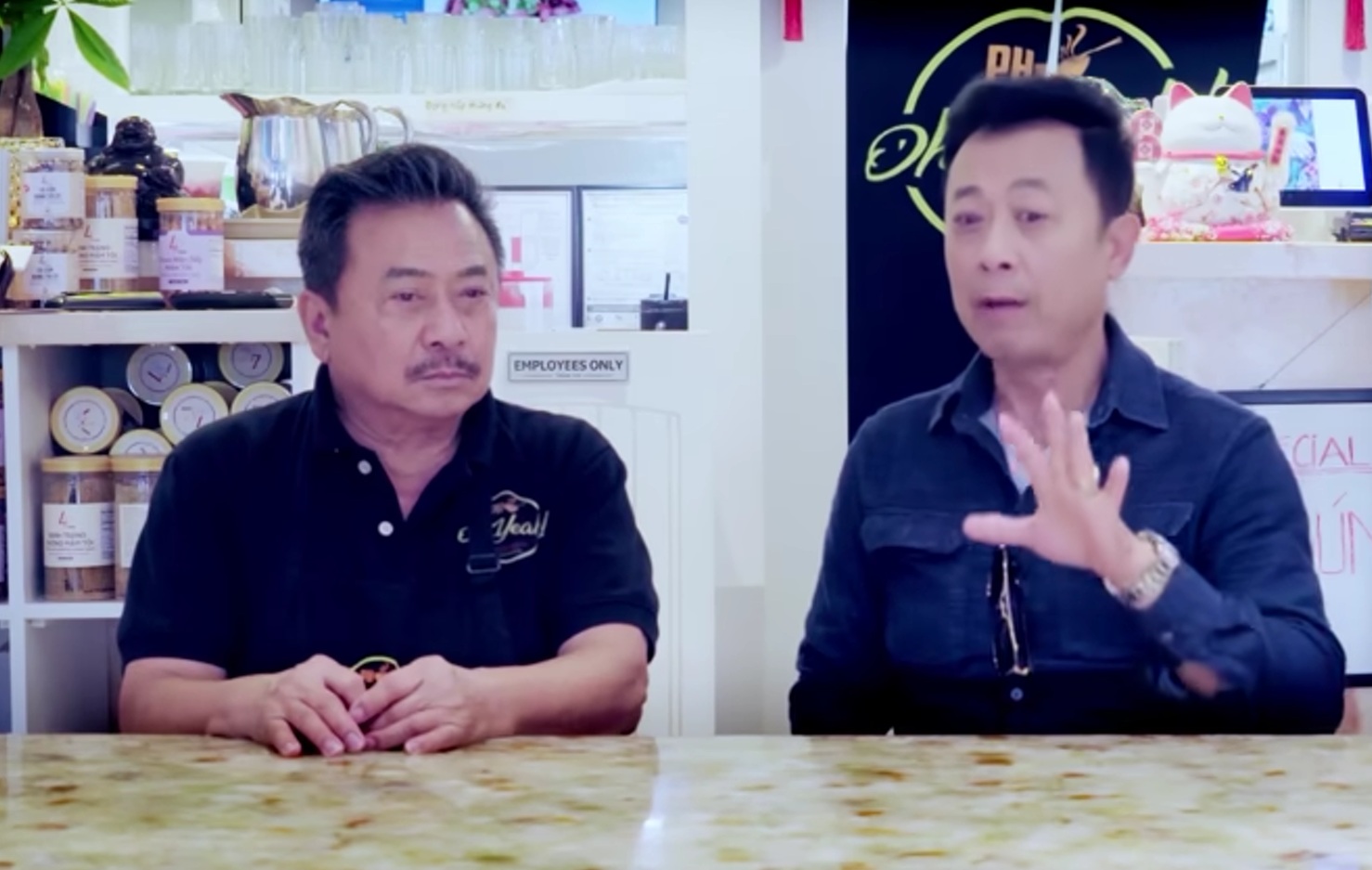 Chẳng qua hôm nay tôi và Vân Sơn gặp nhau để chuẩn bị cho một chương trình văn nghệ. Vân Sơn đến sớm hơn mọi người nên qua nhà hàng của tôi ăn uống. Sẵn tiện như vậy nên tôi lên hình cùng Vân Sơn để trò chuyện.