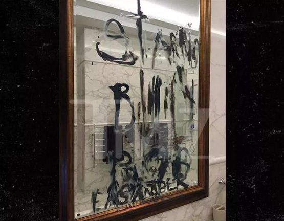 Amber tiếp tục kể, Johnny nhúng ngón tay đó vào thùng sơn màu xanh dương trong phòng, rồi ghi lên gương chữ "Billy Bob" và "Easy Amber" (Amber dễ dãi).