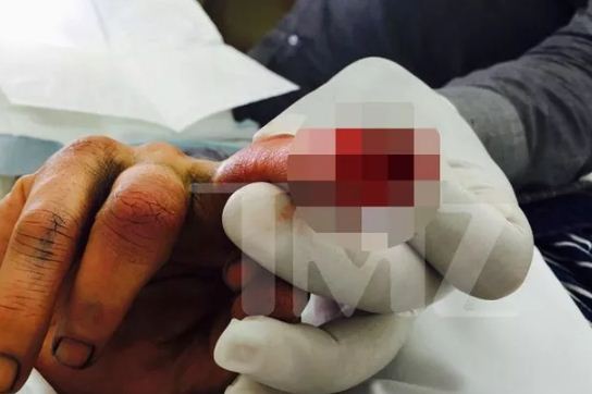 Hình ảnh về đầu ngón tay giữa bị đứt của Johnny Depp khi đó