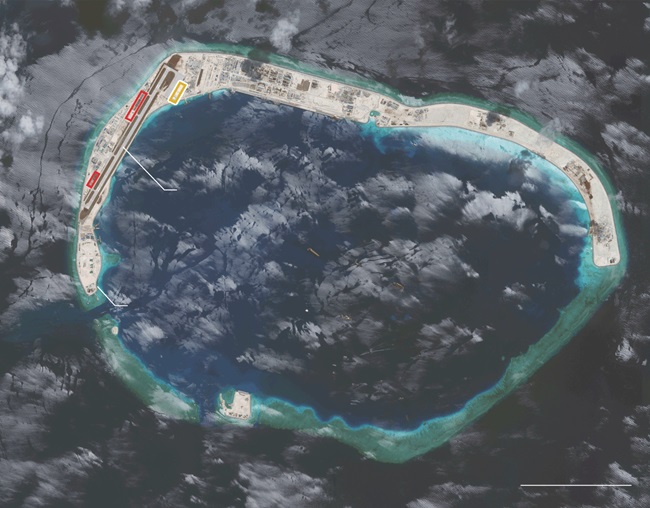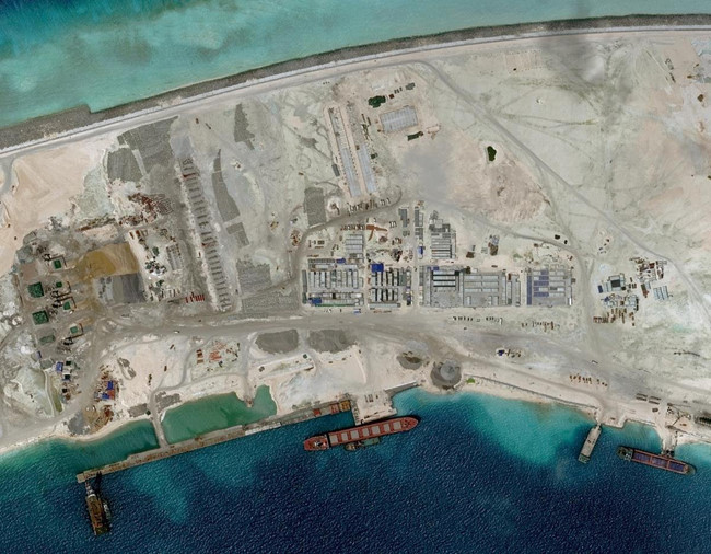 Trung Quốc đã bồi lấp, xây đảo trái phép cùng với đường băng và các công trình quân sự trên Đá Vành Khăn ở quần đảo Trường Sa