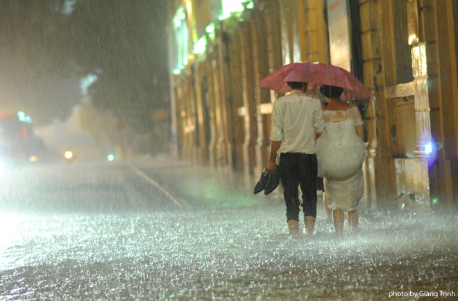 Bức ảnh làm bao trái tim tan chảy. Khoảnh khắc đôi uyên ương cầm tay nhau, xách dép, che ô lội nước cơn mưa khiến cộng đồng mạng lên cơn sốt xình xịch. Tác giả đã chọn góc chụp đẹp và gửi lời chúc phúc cho hai nhân vật chính trong hình.