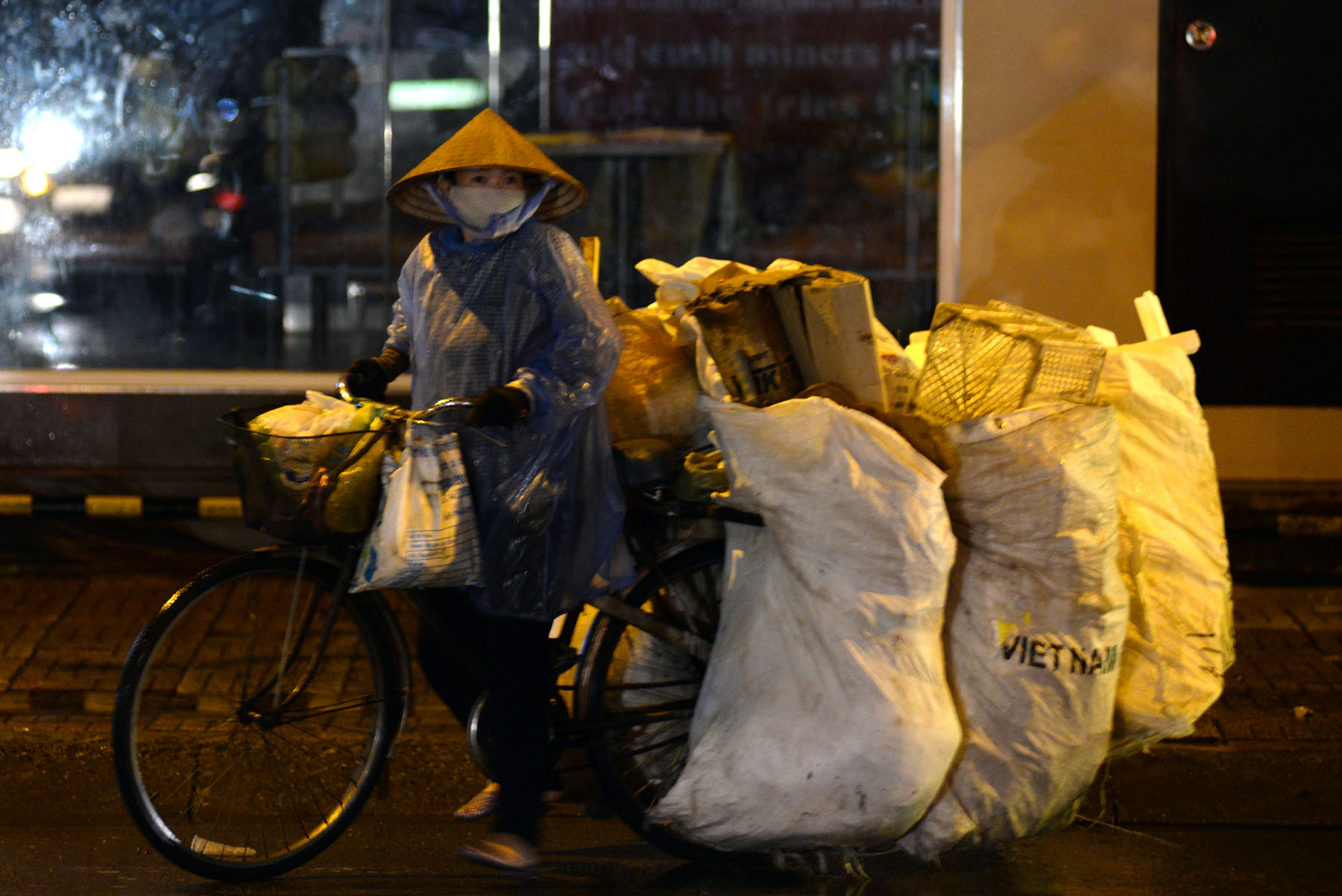 Người phụ nữ quê miền Trung này vào Sài Gòn làm nghề lượm ve chai. “Vô đây lượm ve chai còn có đôi đồng chứ ở quê làm ruộng cực mà không đủ ăn chú ơi. Chăm chỉ làm, ăn uống tằn tiện cũng dư được ít gửi về quê cho con đóng tiền học”, chị tâm sự.