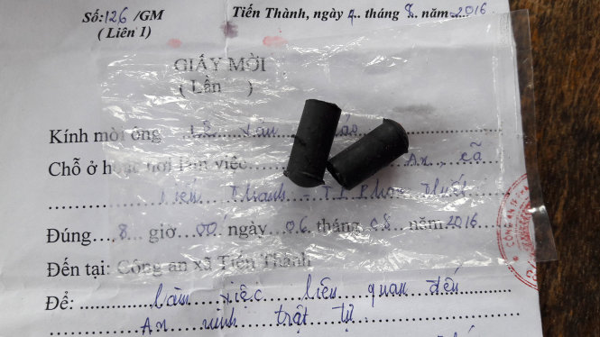 Thiếu tá Bùi Chí Hiếu, trưởng công an xã Tiến Thành, TP Phan Thiết, Bình Thuận, ngày 4-8 ký giấy mời anh Lê Văn Thảo (25 tuổi, ngụ xã Tiến Thành) đến cơ quan công an làm việc vào lúc 8g ngày 6-8. Tuy nhiên anh Thảo không đến.