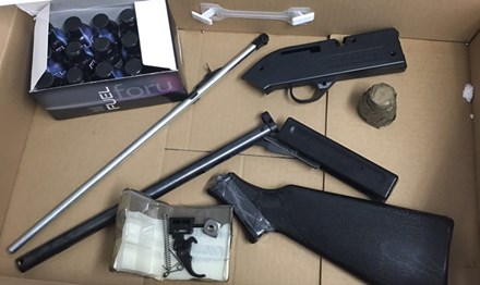 Lực lượng chức năng sau đó tìm thấy khẩu súng hơi, 2.000 viên đạn, 24 bình nén khí chuyên dụng và các tuýp dầu bôi trơn cho súng được giấu trong 6 kiện hàng quần áo, giầy dép, thực phẩm chức năng, loa vi tính, phụ tùng xe đạp, đồng hồ nhựa....