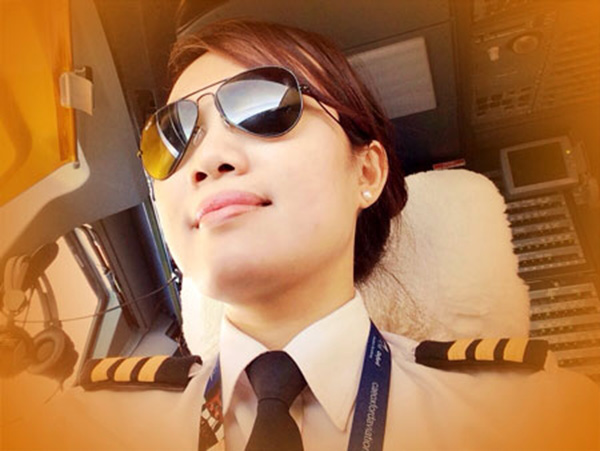 Những ngày đi bay, khát vọng một ngày nào đó ḿnh sẽ là người ngồi trên khoang điều khiển để thật sự làm chủ bầu trời đă thôi thúc cô nàng âm thầm nộp hồ sơ dự tuyển phi công cho Vietnam Airlines.