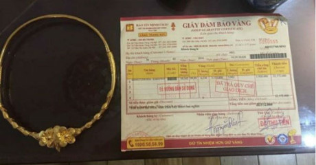 Tới ngày hôm sau, dù đã mang chiếc kiềng đi kiểm định, kiểm tra cụ thể thì nhân viên cửa hàng vẫn không nhận trách nhiệm và đưa yêu cầu chỉ mua lại sản phẩm với giá trị thực của nó là 6 chỉ, phủ nhận giá trị của giấy chứng nhận.