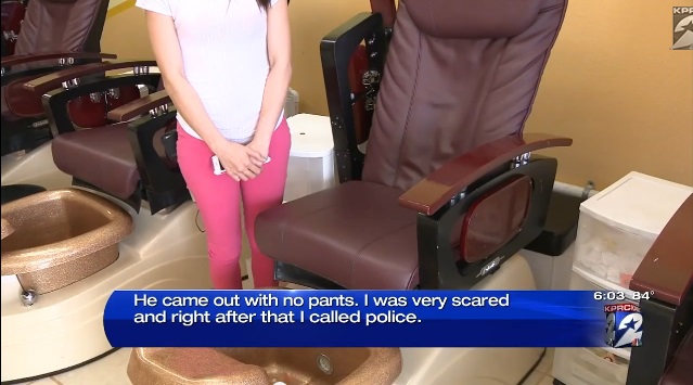 Cô Kim – chủ tiệm thẩm mỹ móng tay gần đó – vẫn còn run khi kể lại việc gã đàn ông bệnh hoạn này rời khỏi tiệm tạp hoá, bước vào tiệm của cô hỏi xin đi nhờ nhà vệ sinh. “Anh ta ‘tồng ngồng’ bước ra, khiến tôi sợ hãi, gọi cảnh sát ngay lập tức,” cô nói. Kim càng run hơn vì lúc này chỉ có một mình trong tiệm. Ngay từ khi người đàn ông này bước vào tiệm, cô đã có cảm giác không ổn. Chỉ trong giây phút cảm giác này được xác nhận khi Kim trông thấy anh ta bước ra “trống hua trống hoác.”