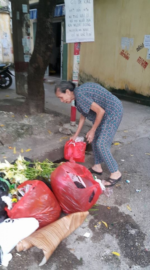 Quả thực, trên con đường nhỏ Nguyễn An Ninh vô cùng sạch sẽ, cụ chỉ cho tôi những gõ sâu mà cụ thường đi gõ kẻng để người dân biết giờ đi đổ rác. Đi đường hễ thấy có túi nilon hay tờ giấy nào rơi ở đường là bà nhanh tay nhặt, vo tròn chúng lại rồi đến đống rác quy định vứt.